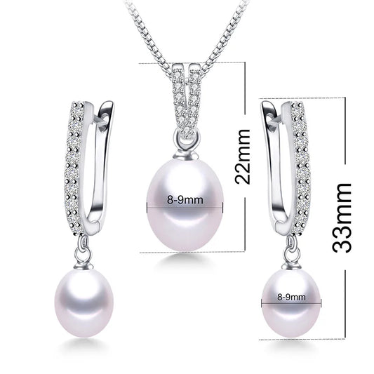 Horseshoe Freshwater Pearl Earrings & Necklace Jewelry Set - White
